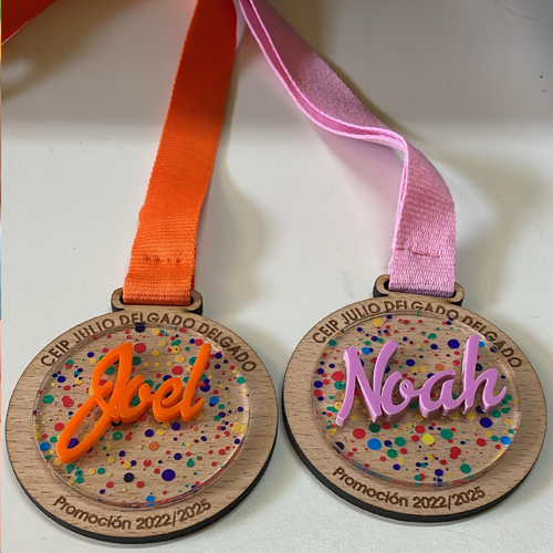 Medallas de Madera Personalizadas con Nombre en Metacrilato